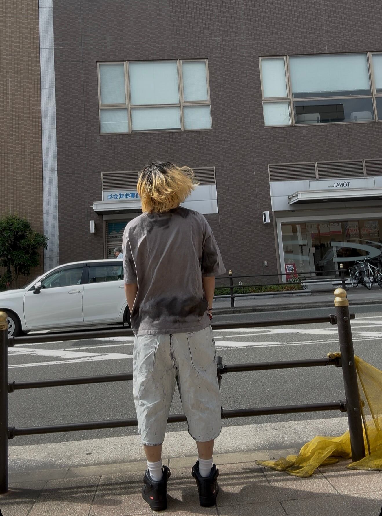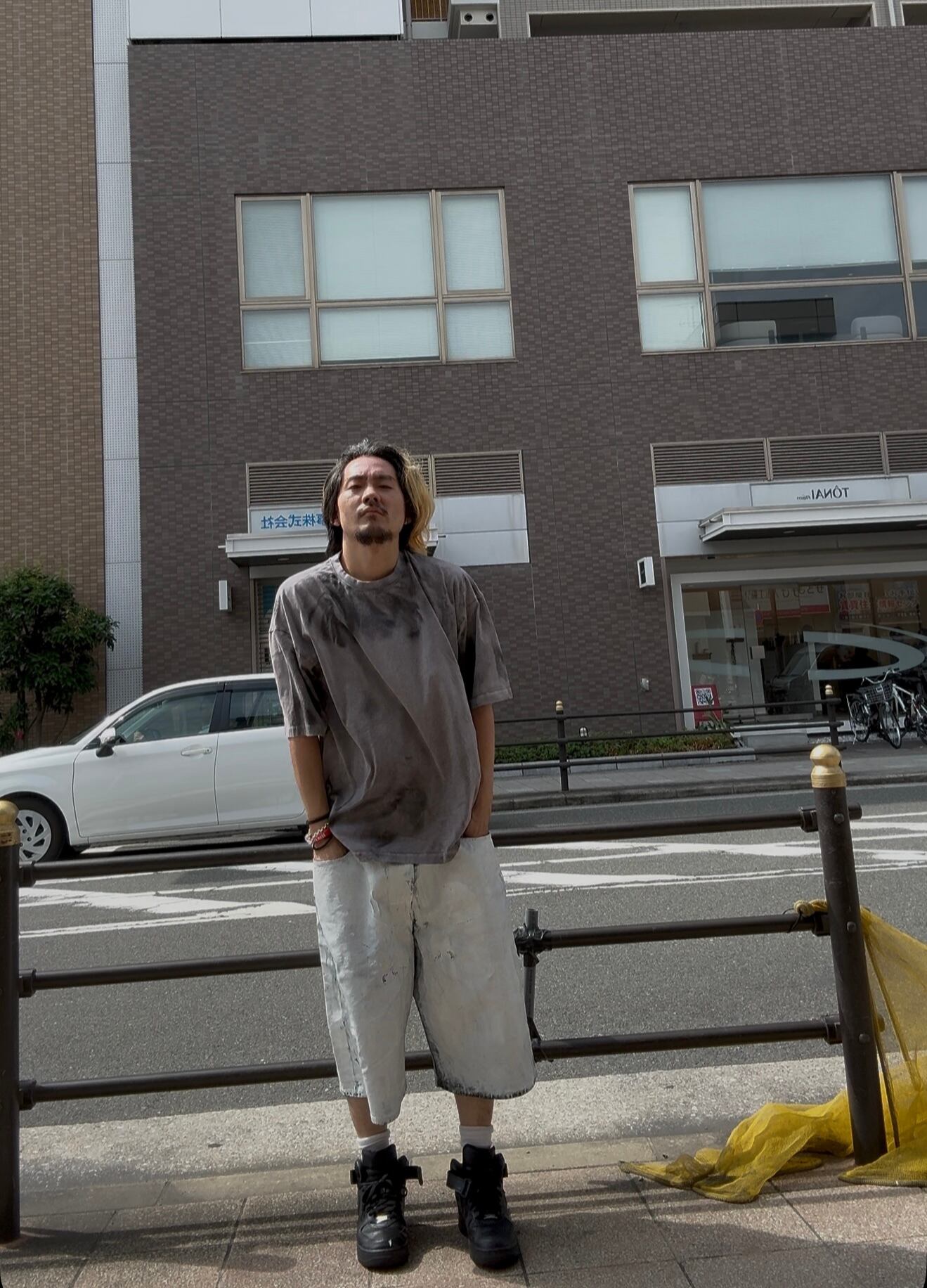 マーブル柄に加工を施してあるTEE